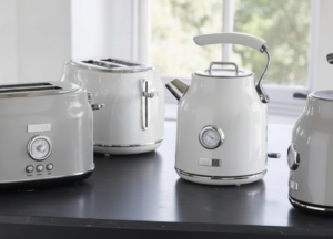 Retro-inspired kettles bring warmth and personality into the kitchen. Soft curves and muted colors create a cozy atmosphere, perfect if you want your appliances to feel like decor pieces.